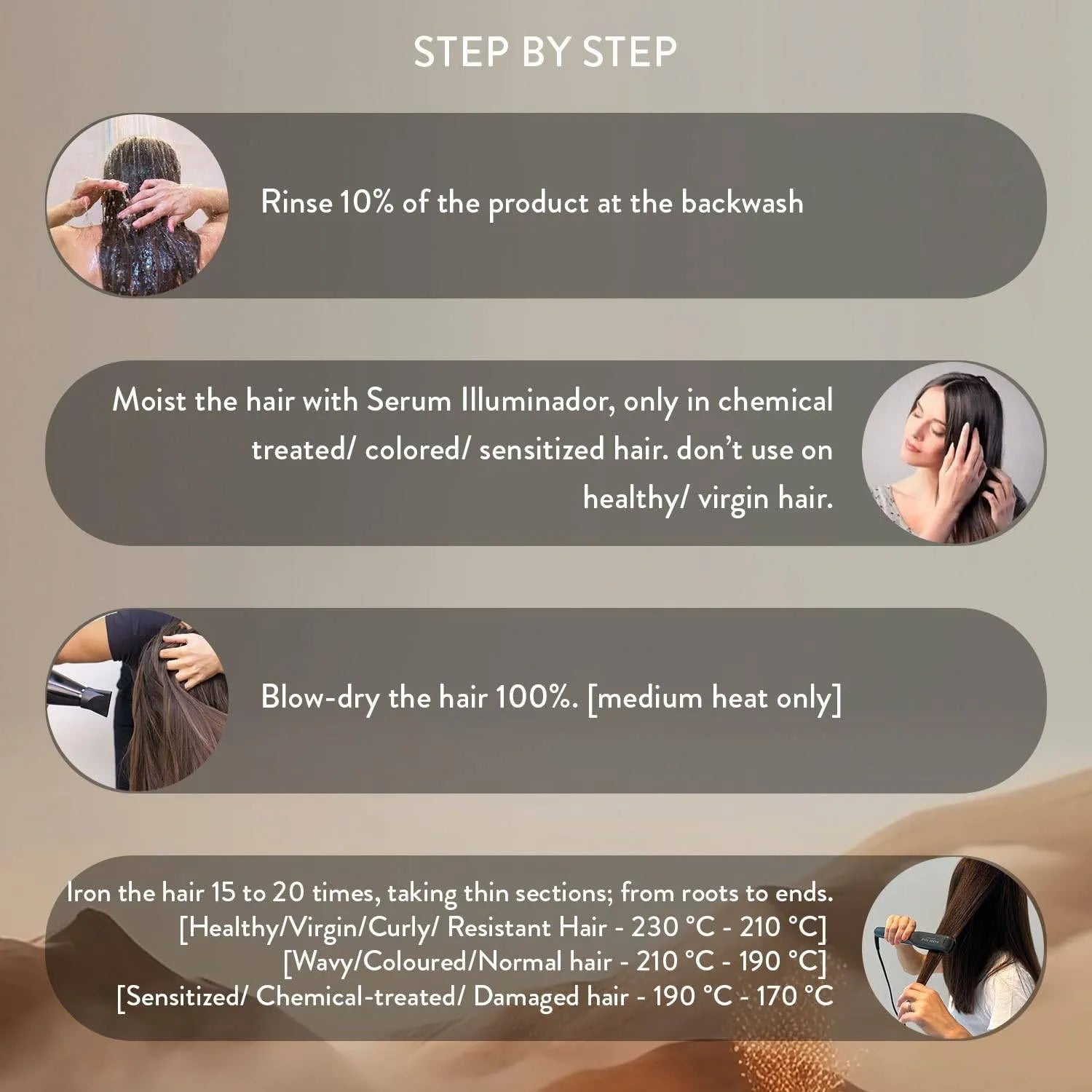 Infused with natural ingredients and advanced nano compounds, it restructures and revitalizes the hair shaft from within, delivering silky, straight, and frizz-free results that last. Ideal for all hair types, especially curly, dry, and chemically treated hair.